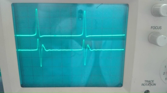 - Именно такая форма сигнала, по мнению автора, необходима для эффективного отделения предполагаемой продольной составляющей излучения (связанной со скалярным магнитным полем — производной от А) от обычных поперечных электромагнитных волн.
