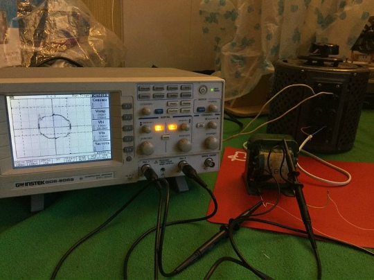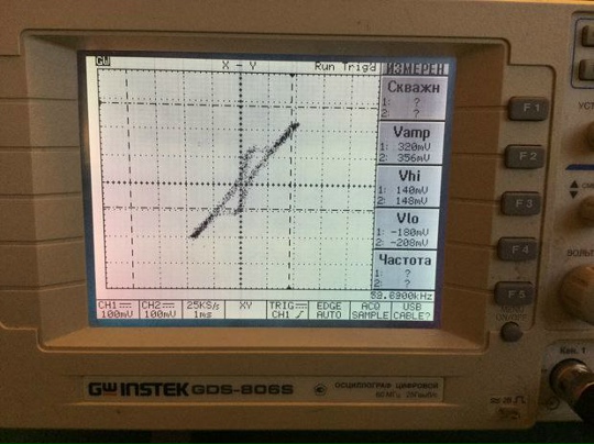 3.2. Визуализация и анализ петли гистерезиса. Для прямого наблюдения магнитных свойств была собрана классическая схема с осциллографом в режиме X-Y: