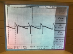 L1. Напряжение на накопительном конденсаторе линейно снижается. - Качерный разрыв. Когда ток через катушку достигает пика и начинает падать, транзисторы резко закрываются. В индуктивности возникает высоковольтный импульс ЭДС самоиндукции.